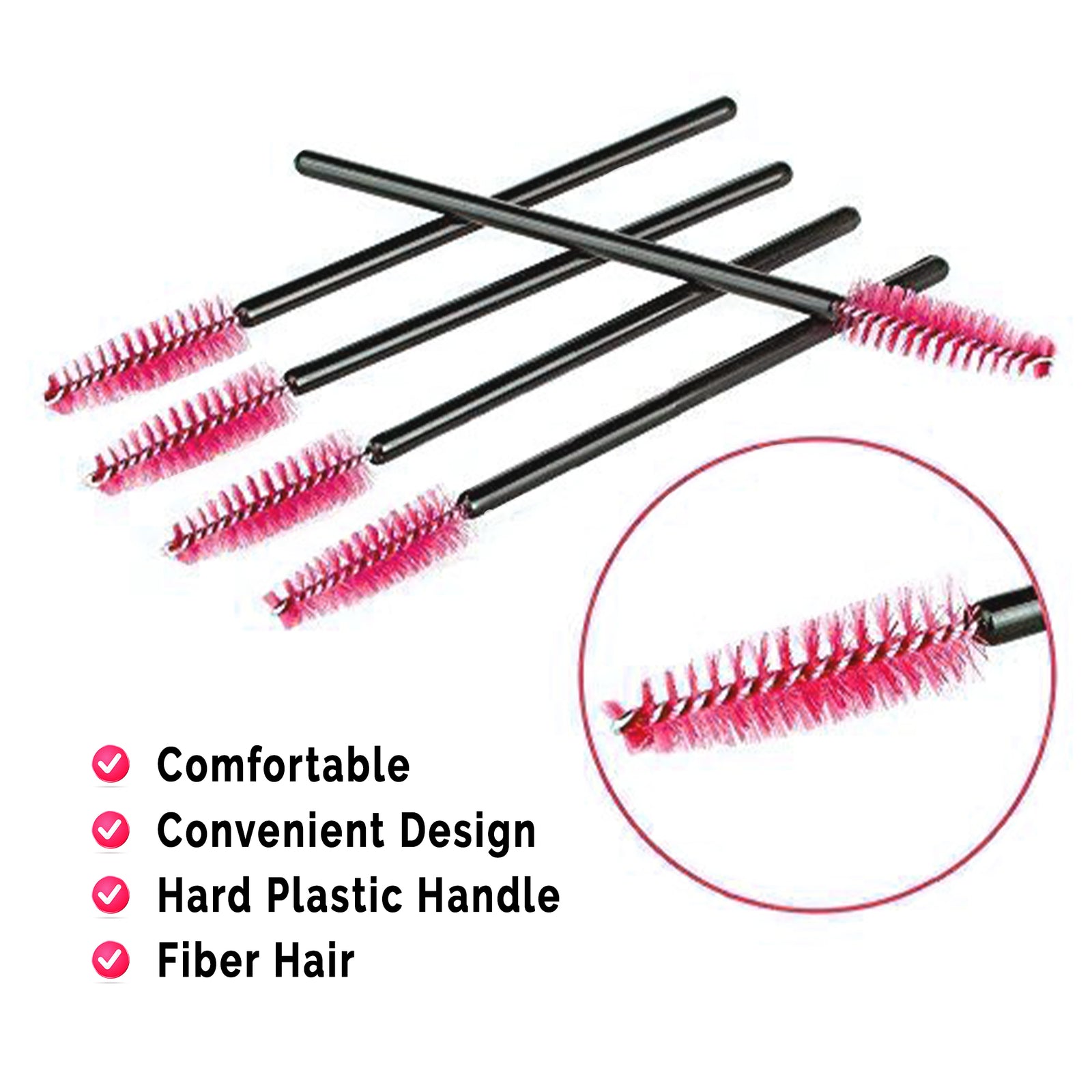 The Mascara Wand applicator brushes are constructed of a hard plastic handle and soft fibre hair, thus enabling it to be elastic and bendable. A flexible head gives you a multi-angle reach of your eyelashes.