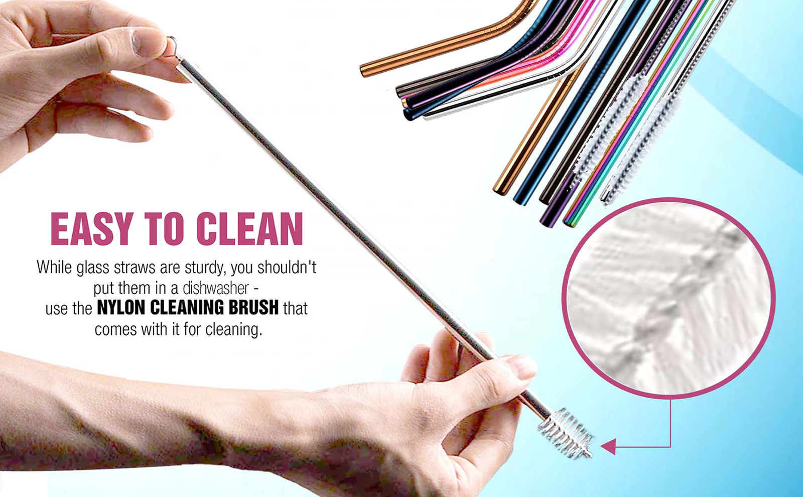 • Easy to Clean - The straws are easy to wash either by hand or dishwasher. It includes 2 bristled brushes featuring a stainless steel handle and nylon bristles, the brush is of the perfect size for these straws, also suitable for cleaning cups and bottles.