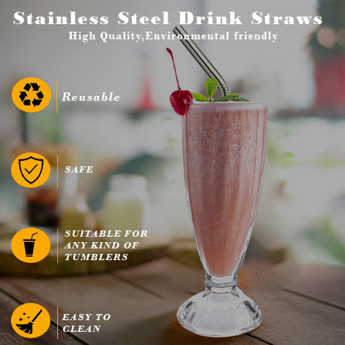 • Safe Use and Reusable - These straws are made of top-grade non-toxic stainless steel which is solid, durable, crush-proof, and rust-free. These straws comply with US and EU food safety requirements. Unlike plastic products, stainless steel straws are very safe to use and do not contain BPA. Besides, stainless steel does not leach chemicals and does not interact with the products you consume.